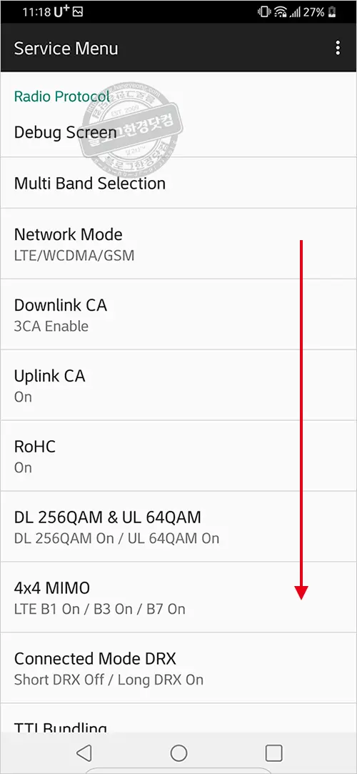 다이얼에서 시크릿코드를 입력하면 바로 화면이 전환되면서 시크릿모드에 진입이 된다. APN편집 옵션을 켜기 위해서 시크릿모드에서 스크롤을 아래로 내린다.