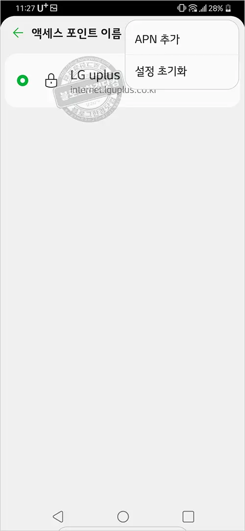스마트폰에서 설정>네트워크 및 인터넷>모바일 네트워크>엑세스 포인트 이름을 찾아 들어간다.